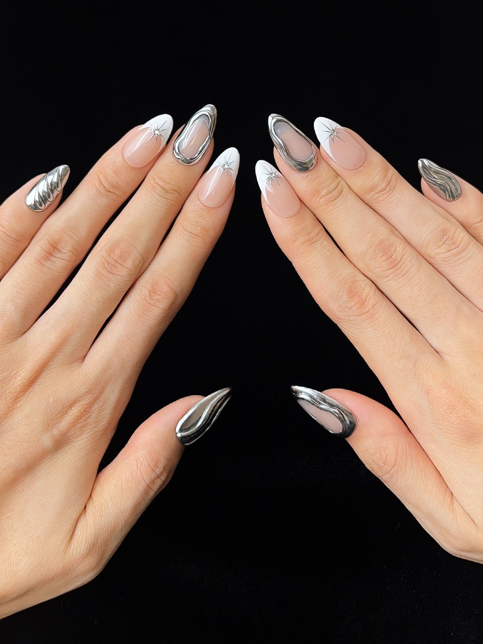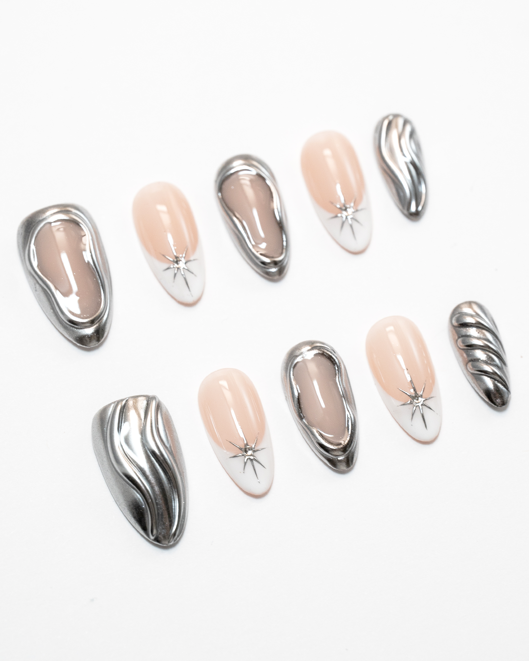 ✔️ Dégradé argent & nude aux reflets satinés